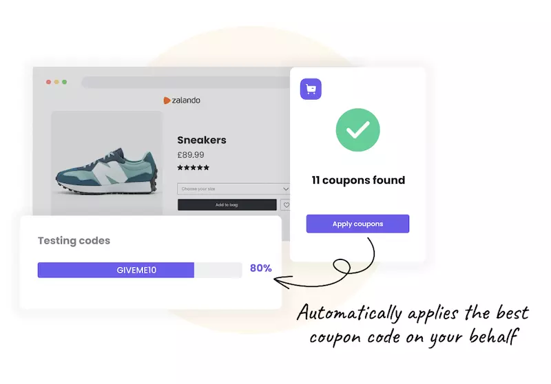 Automatically applies coupon codes from 2000+ merchants at the checkout on behalf of shoppers.