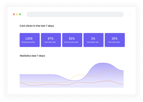 SmartShopping integrates into your existing shopping extension and mobile app within just 2 days and offers features that help you take over the very last step before the purchase and promptly fix conversion leaks.