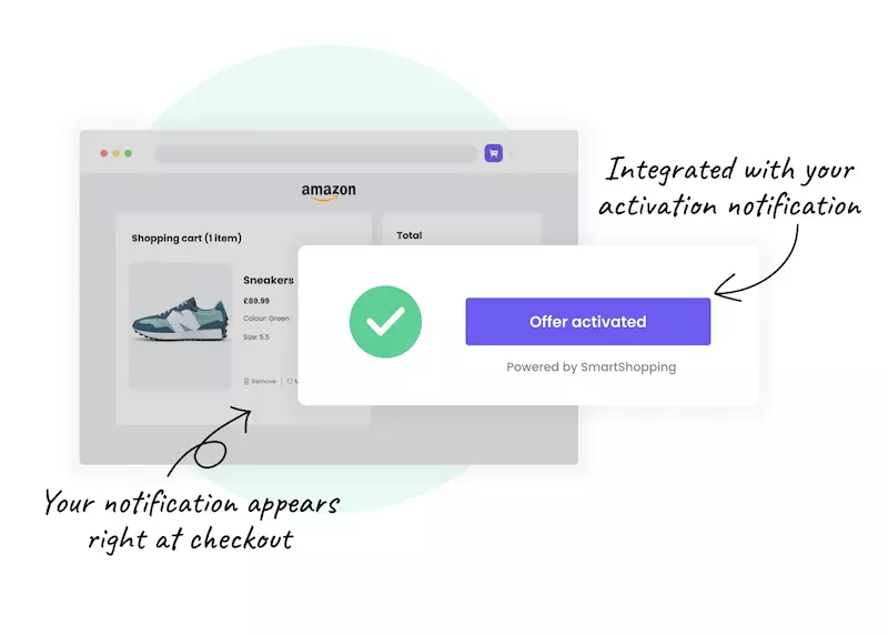 Protect your activations and prevent traffic leaks. By integrating SmartShopping features like automatic coupon application, real-time cashback activation alerts during checkout, and safeguarding against double-dipping, you can fill gaps in your users’ shopping journey and bring back up to 35% of lost activations.